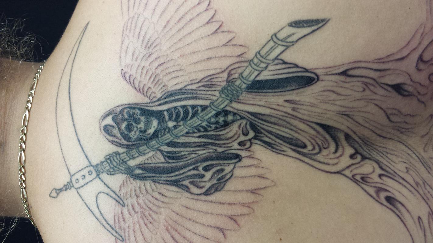 Keyword Galleries: Black and Gray Tattoos , Body Part Back Tattoos , Evil Grim Reaper Tattoos