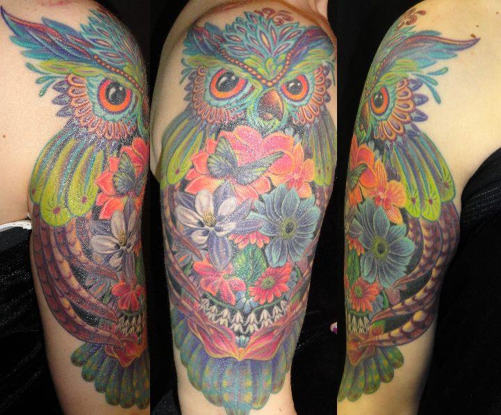 Custom colorful flower skull owl.